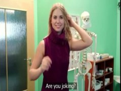 Къдрава руса путка облиза в фалшив болничен